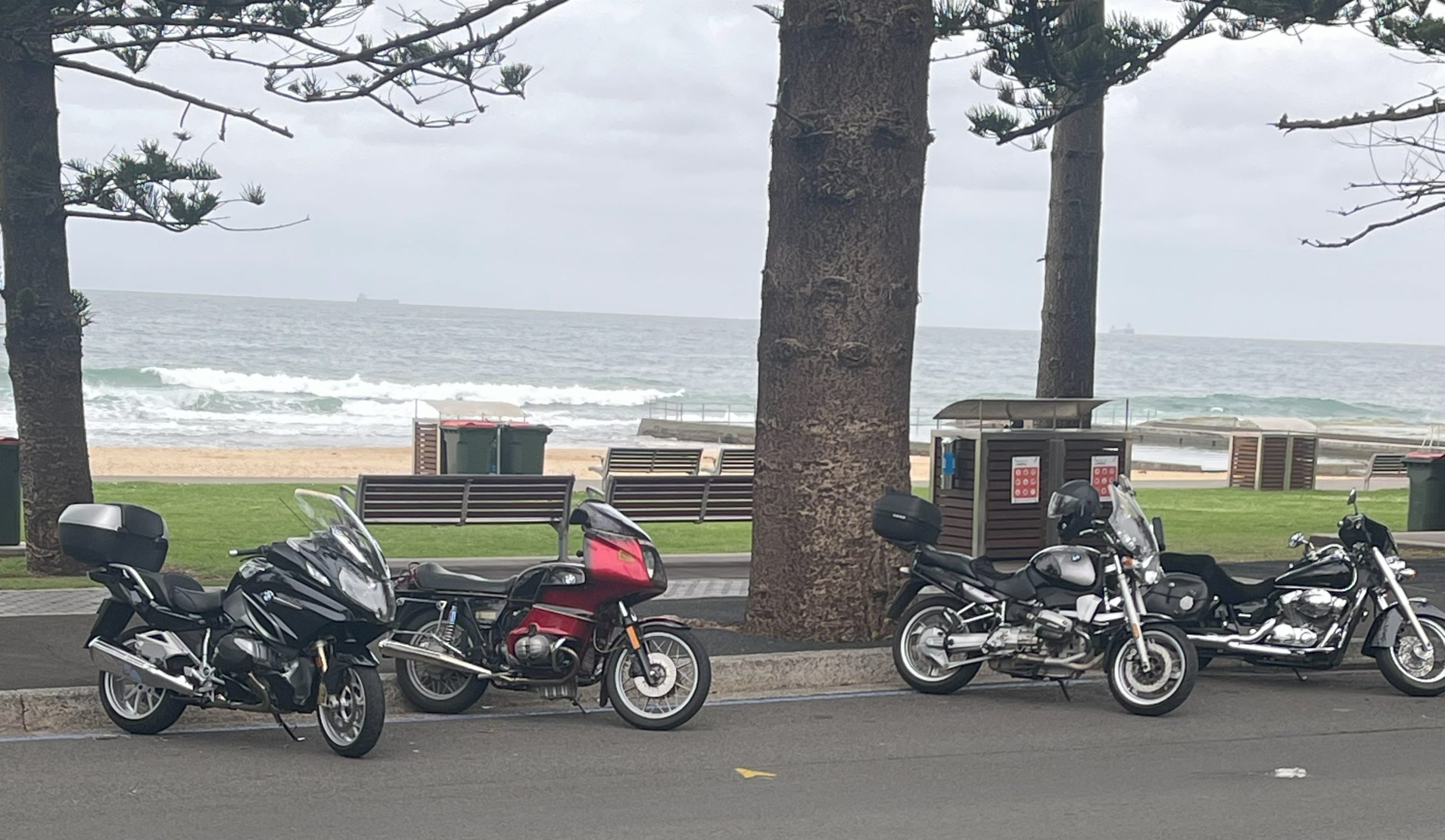 Whispers was not feeling too well so Perry agreed to lead this Monday riders to Austi beach cafe Austinmer. Perry on his Honda Shadow, John on his BMW, new teeth Lassi on his BMW and Russell on his historical BMW. This is the day the Lord has made, we will RIDE rejoice and be glad in it.