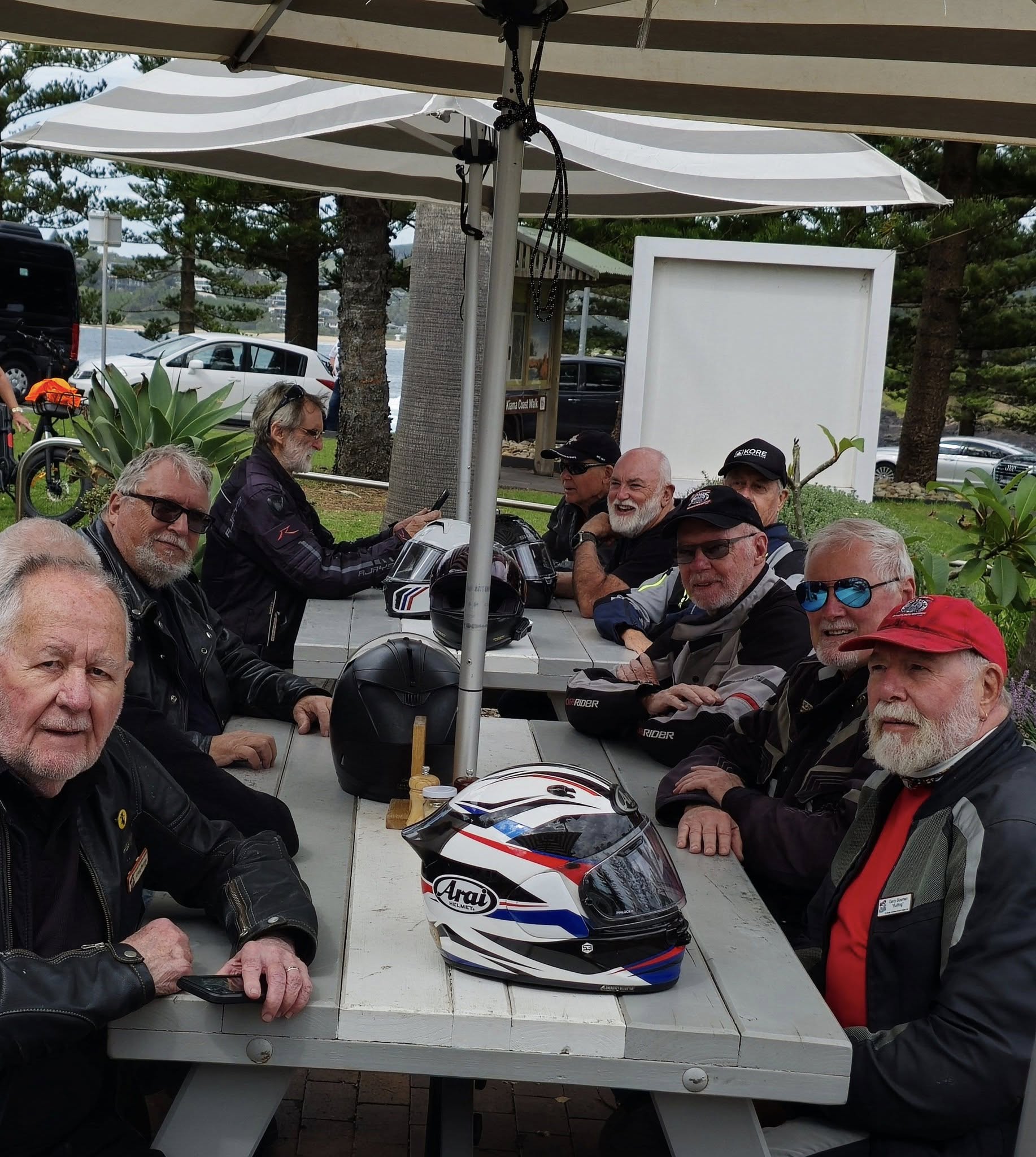 After our sustenance was consumed, in very pleasant conditions, we then headed straight for home. We lost our last two riders on the way down, despite the all-together calls on the radio, who met us at the blowhole, and we lost Red on the way home. He got caught behind a learner getting off the Kiama headland, and by the time he got through the shops, we were gone, but he caught up by taking the old tollway.